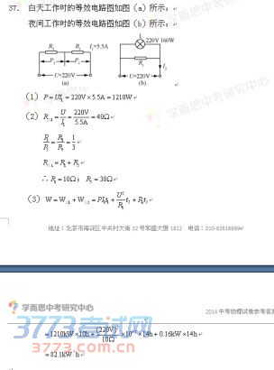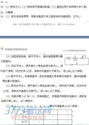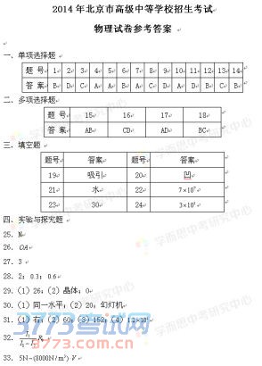 [组图]2014北京中考物理答案发布