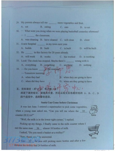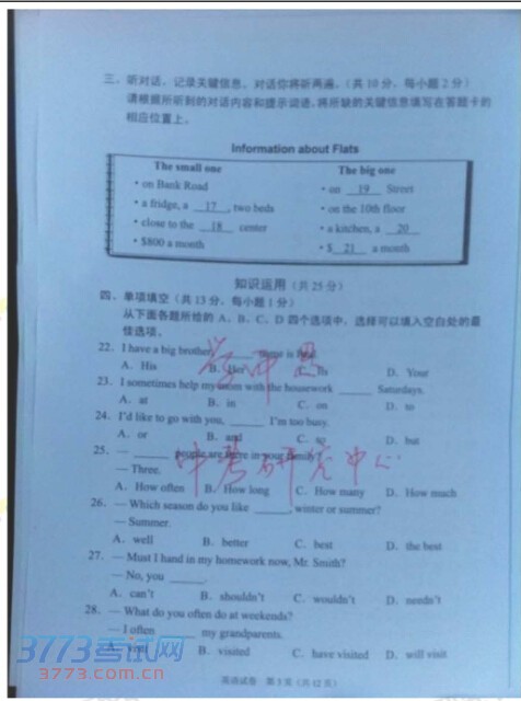 [组图]2014北京中考英语试题试卷发布