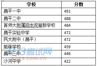 2014昌平中考分数线 2014北京昌平中考分数线
