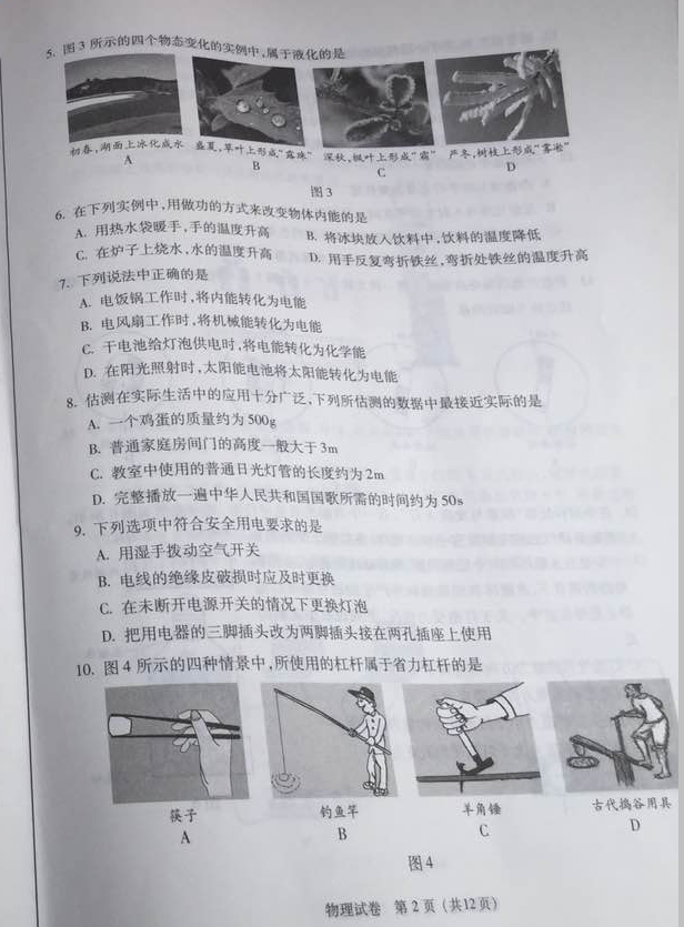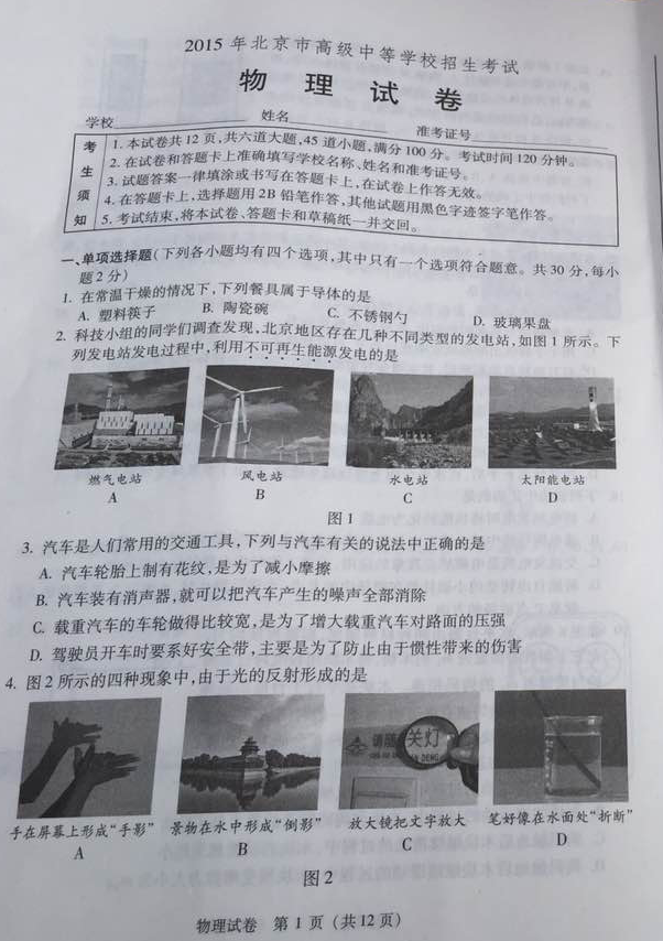 北京中考试题、答案和中考作文。祝各位考生都能取得好的成绩。2015年北京中考物理试题(图片版):