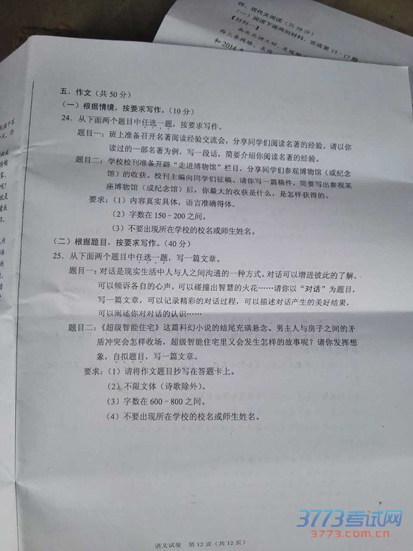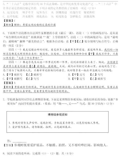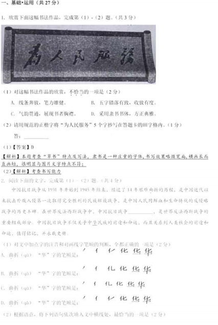 [组图]2015北京中考语文真题及答案公布