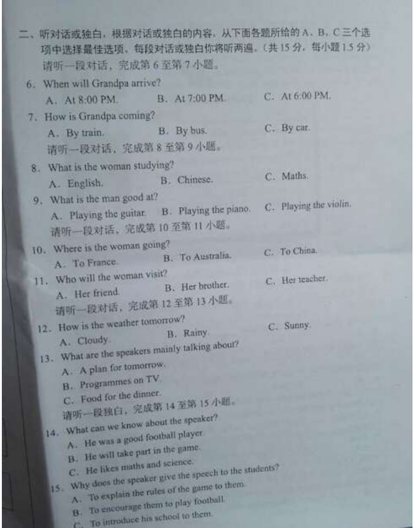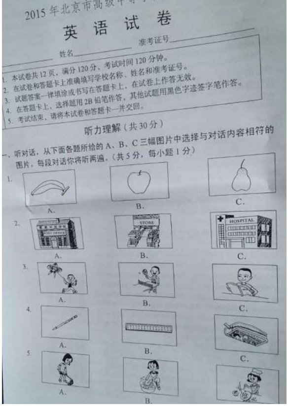 [组图]2015北京中考英语真题及答案发布