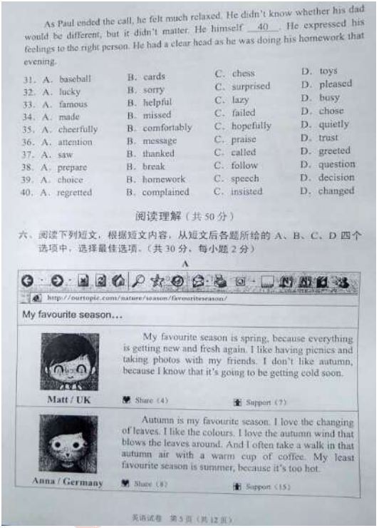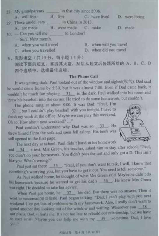 [组图]2015北京中考英语真题及答案发布