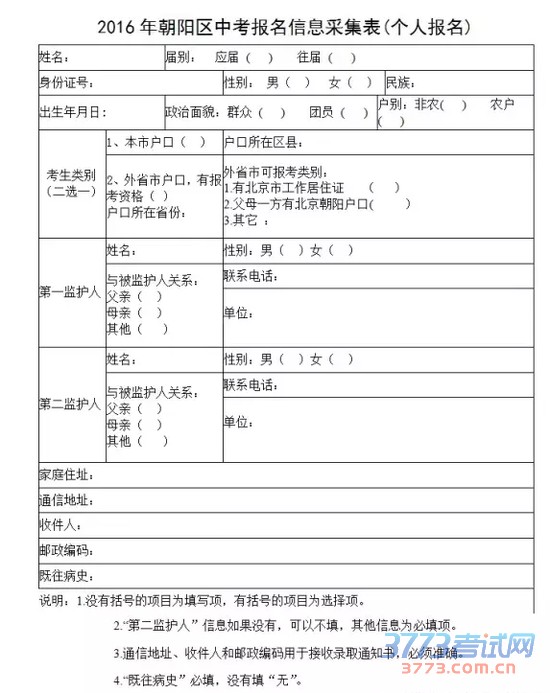 1、将填写完整的《2016年中考报名信息采集表》(见附件)和学生近期证件照电子版(480*640像素,白色背景)于3月15日前发至邮箱:cyzz310@126.com。