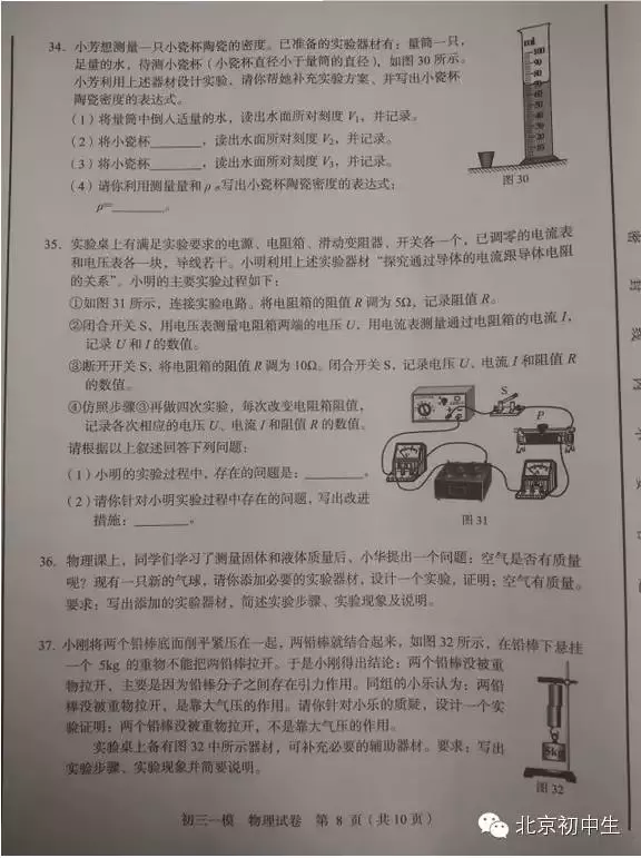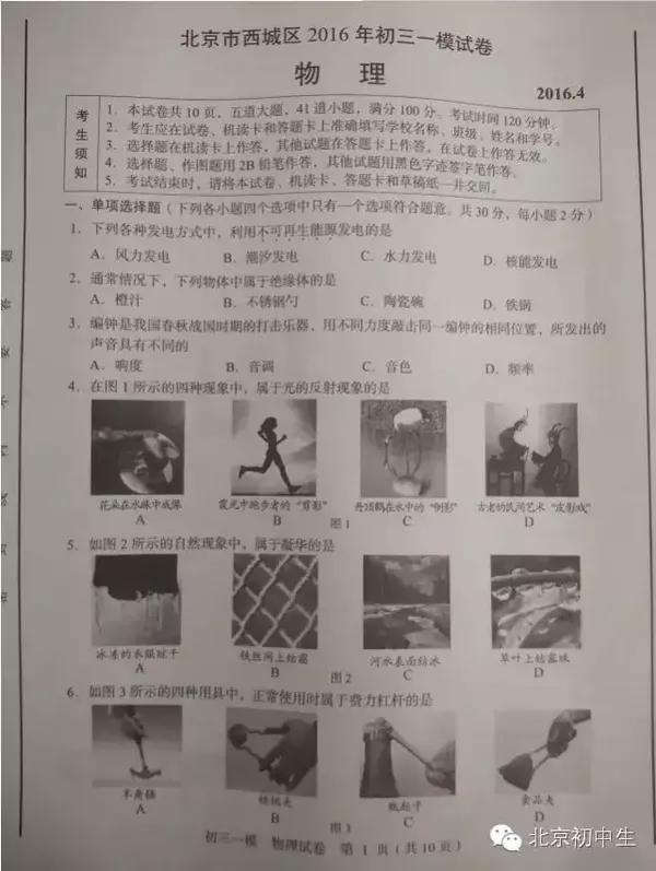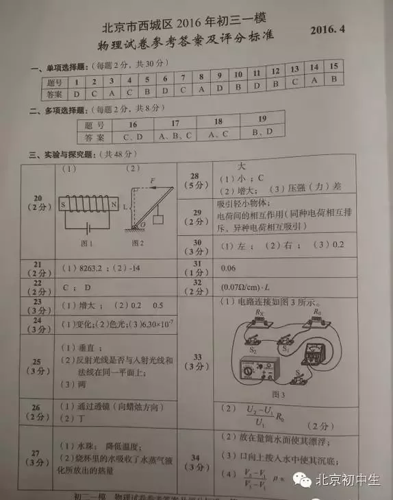今天,北京西城一模开考了,小磊哥给大家整理了物理试卷还有答案哦,希望没考的同学们能借鉴一下,考过的同学根据答案,在整理你一下你做错的题,温故而知新嘛!