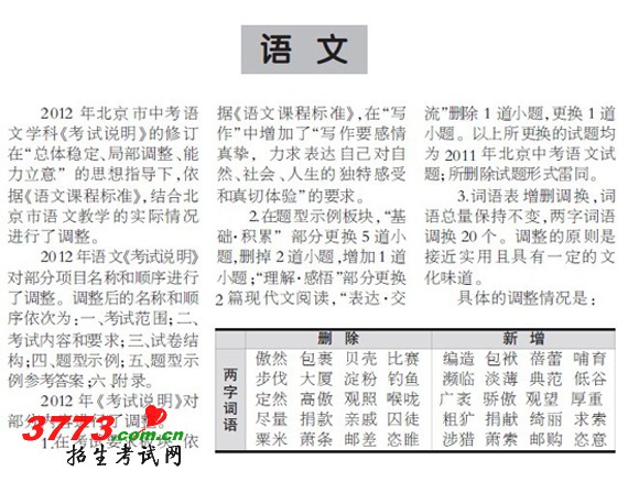2012北京中考语文考试大纲政策解读2012北京中考语文考试大纲政策解读