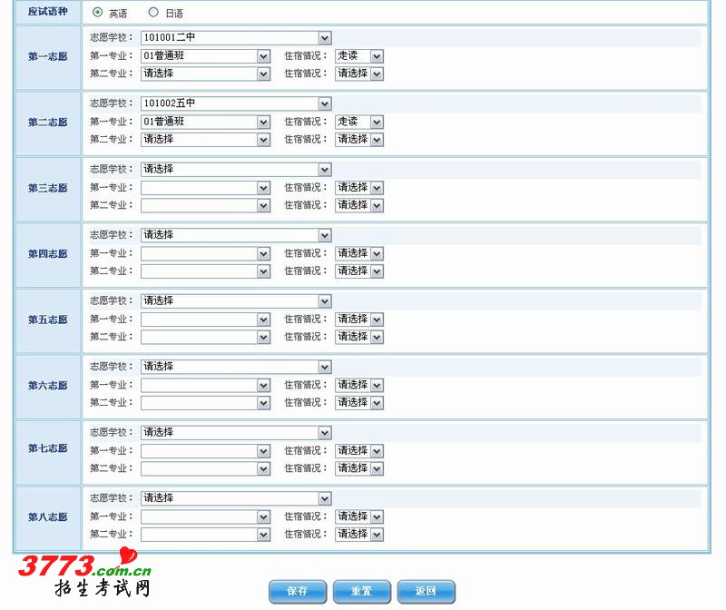 1、考生类别为“外省市,无本市报考资格”的考生只需要选择“应试语种”,不能填报志愿。