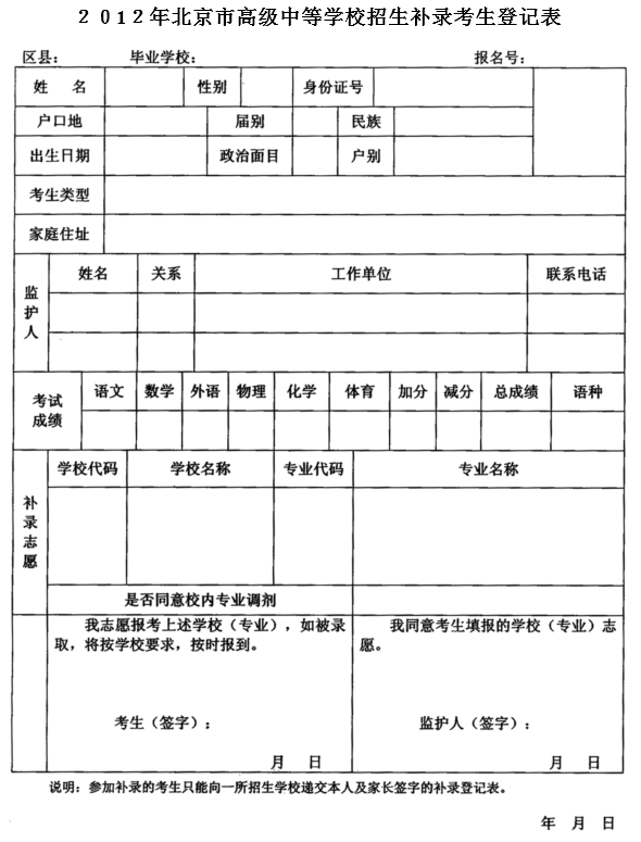 补录学校专业、地址及联系电话详见《北京市高级中等学校招生简章(2012年)》