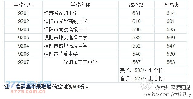 【[话筒]溧阳市2014年普通高中录取分数线公布】省溧中等普通高级中学招生的最低录取控制分数线为:省溧中统招线:631分 择校线:614分;光华中学统招线:610分 择校线:601分;南渡中学统招线:596分 585分。具体分数线见配图。