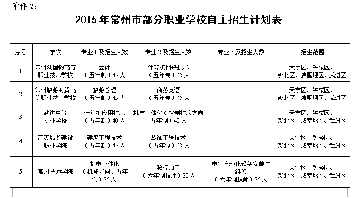 新华报业网讯 在刚刚出炉的“2015年常州部分高中阶段学校自主招生计划表”上,我们发现,招生名额增加到840人,试点的学校从原来的5所增加到了11所,其中5所职业学校的纳入也创造了全省高中自主招生的先河。