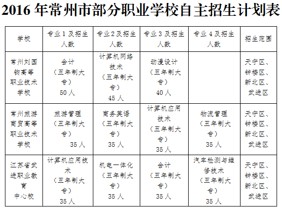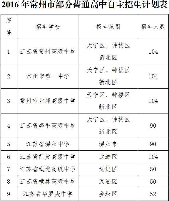 备注:经开区所属初中校的学生,根据《2016年常州市高级中等学校招生工作意见》参加相应区域的高中自主招生。