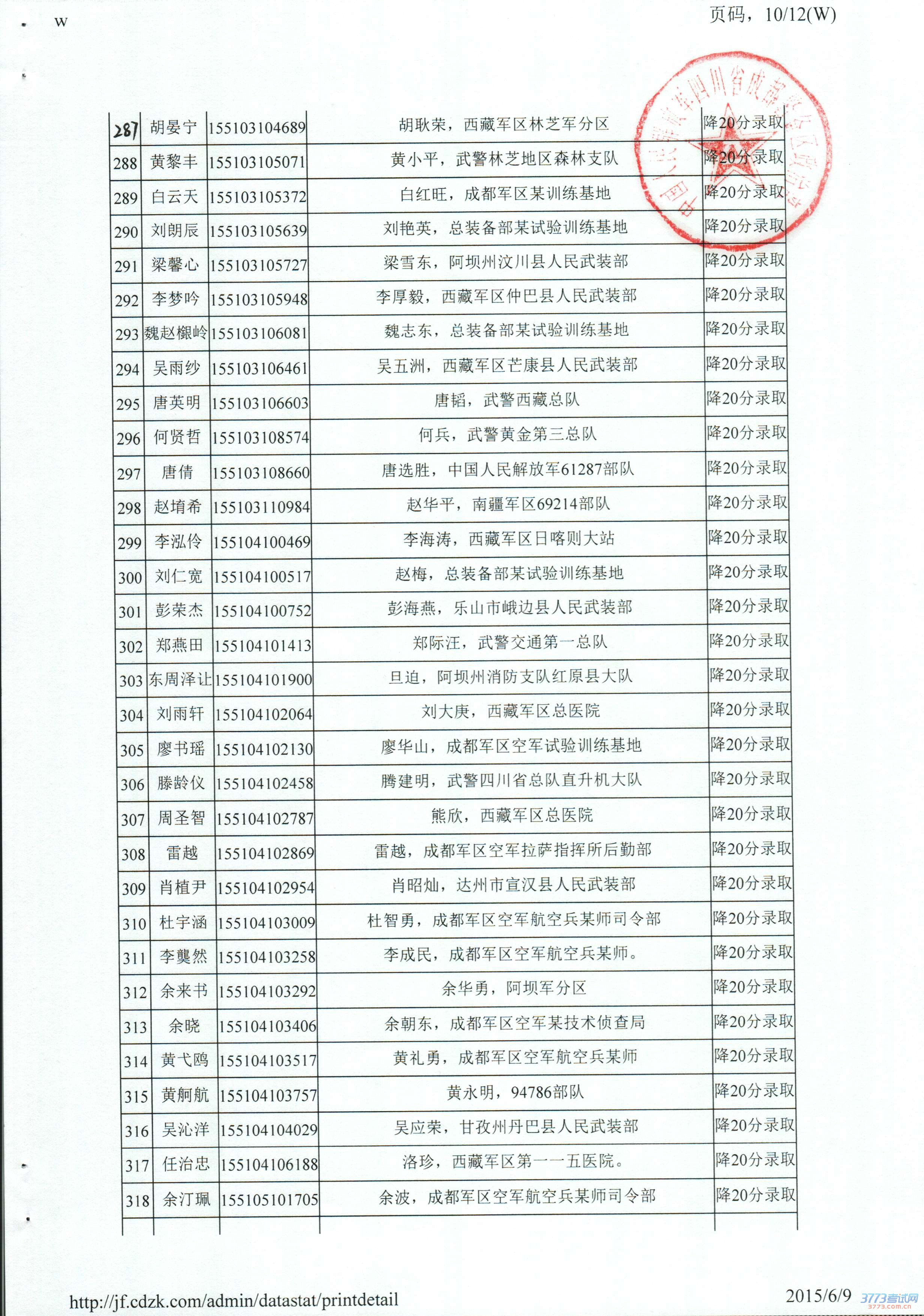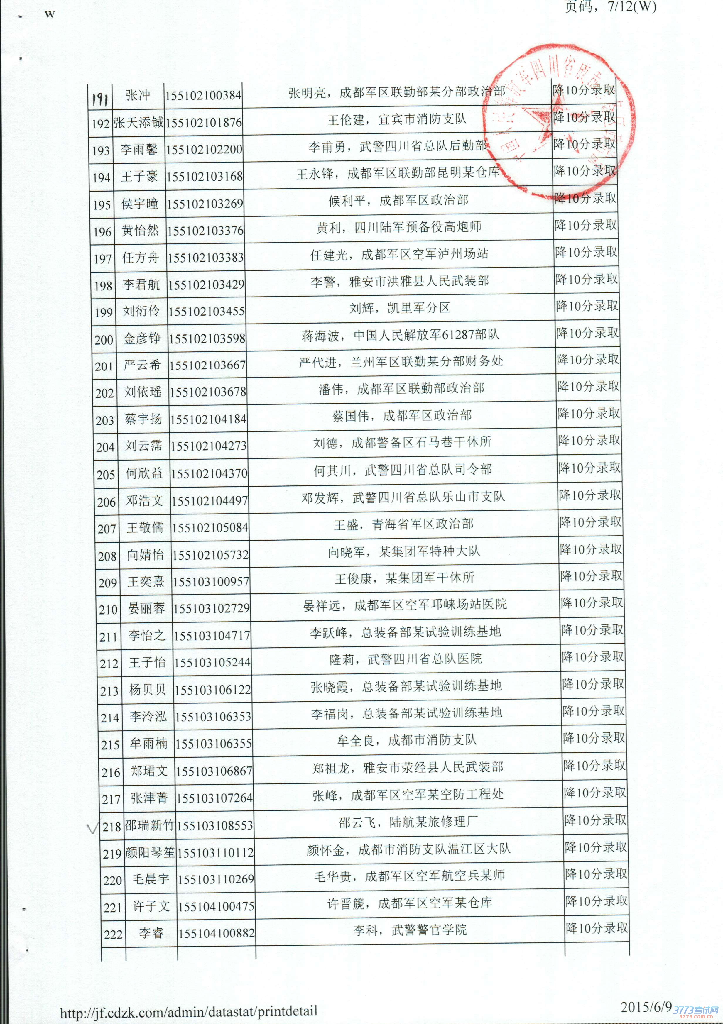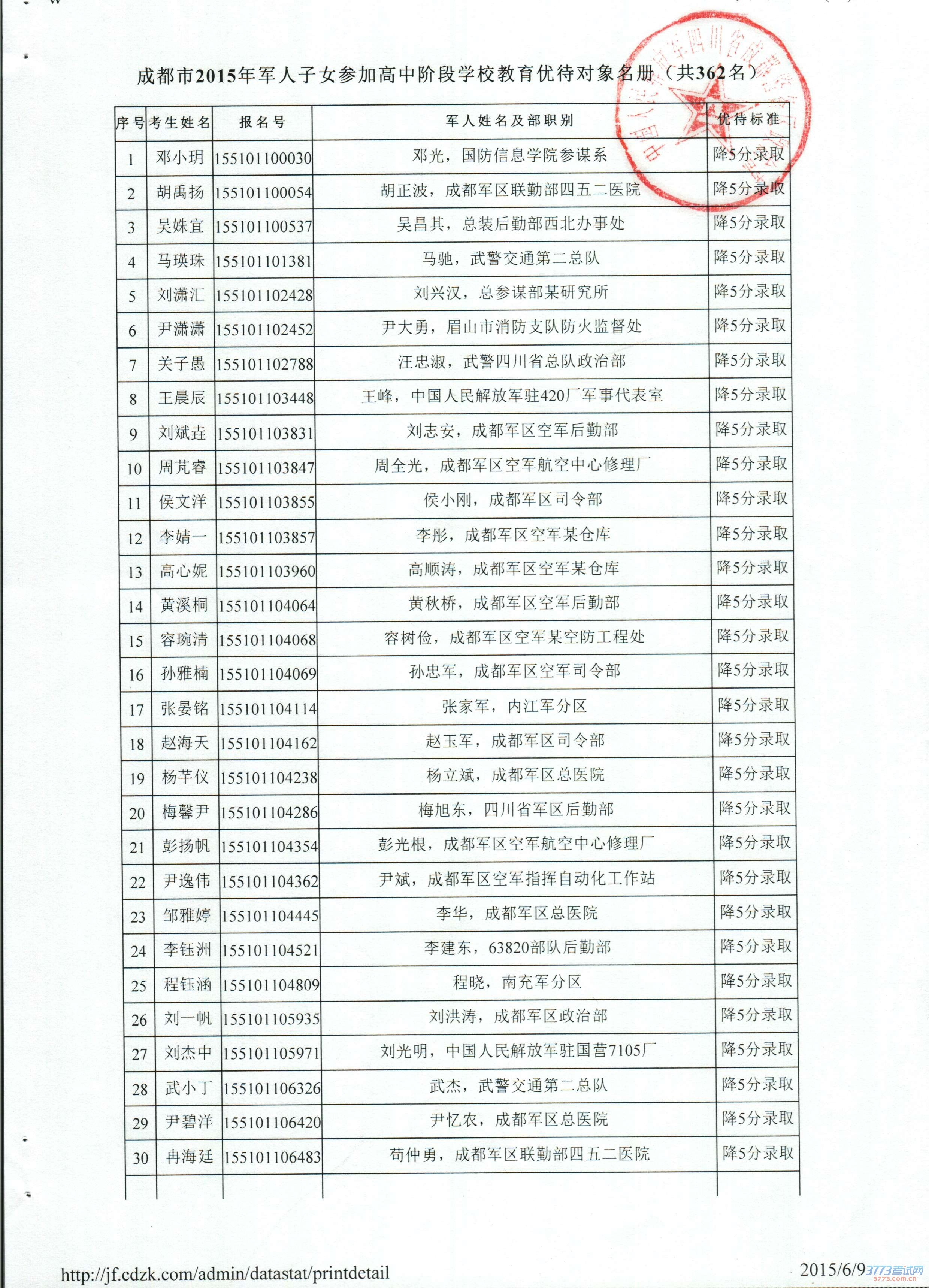 [组图]2015成都中考军人子女加分优待对象名单公示