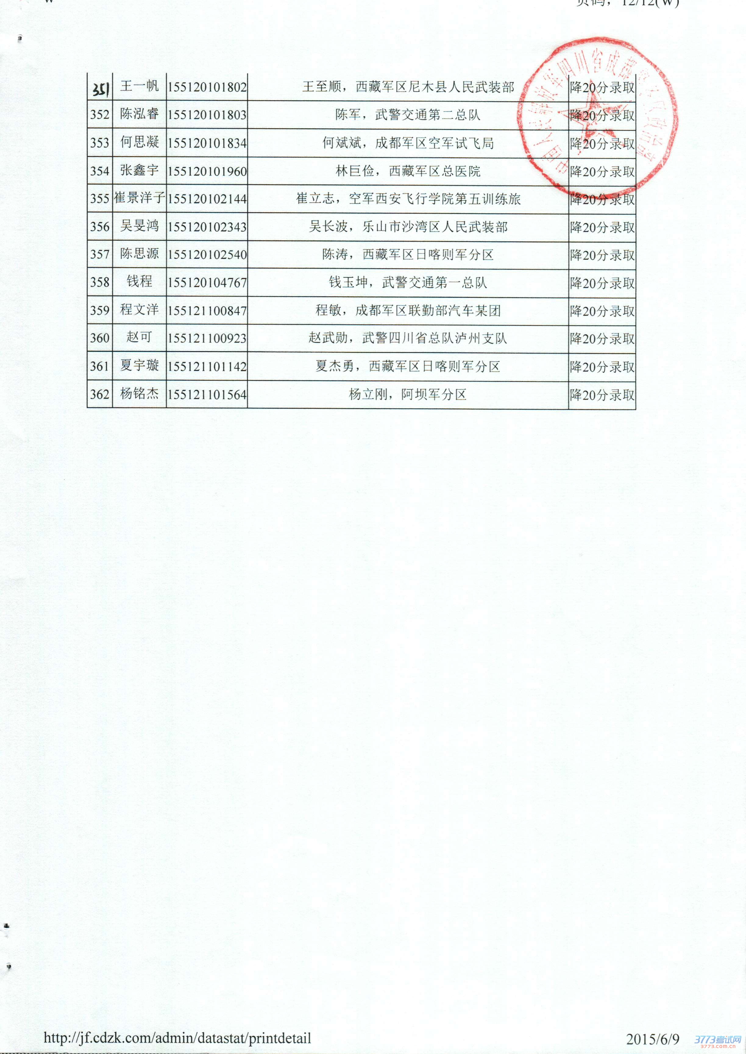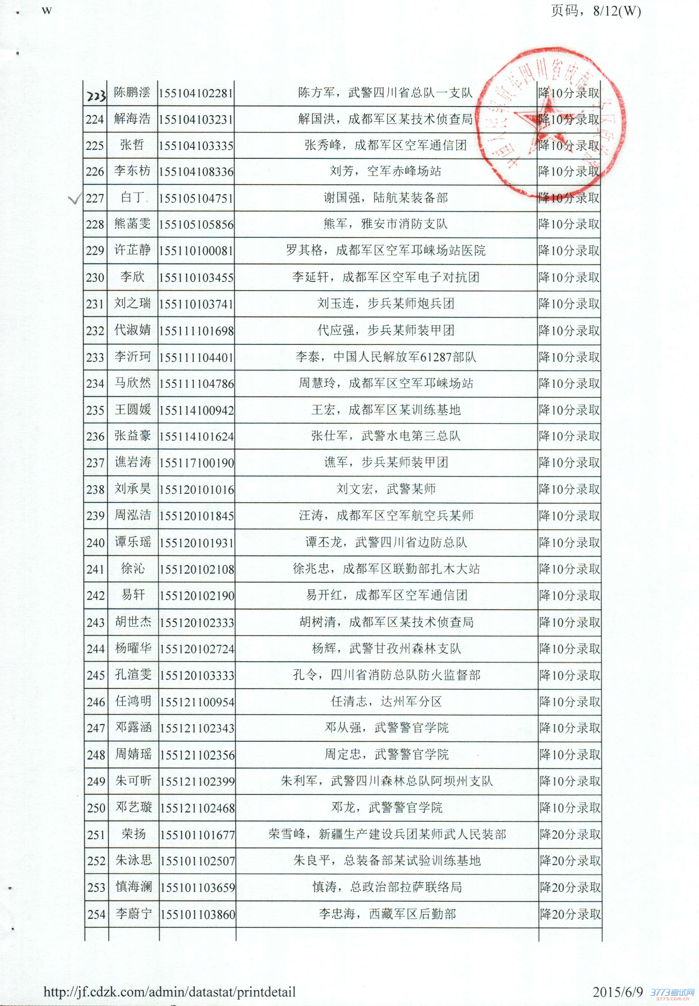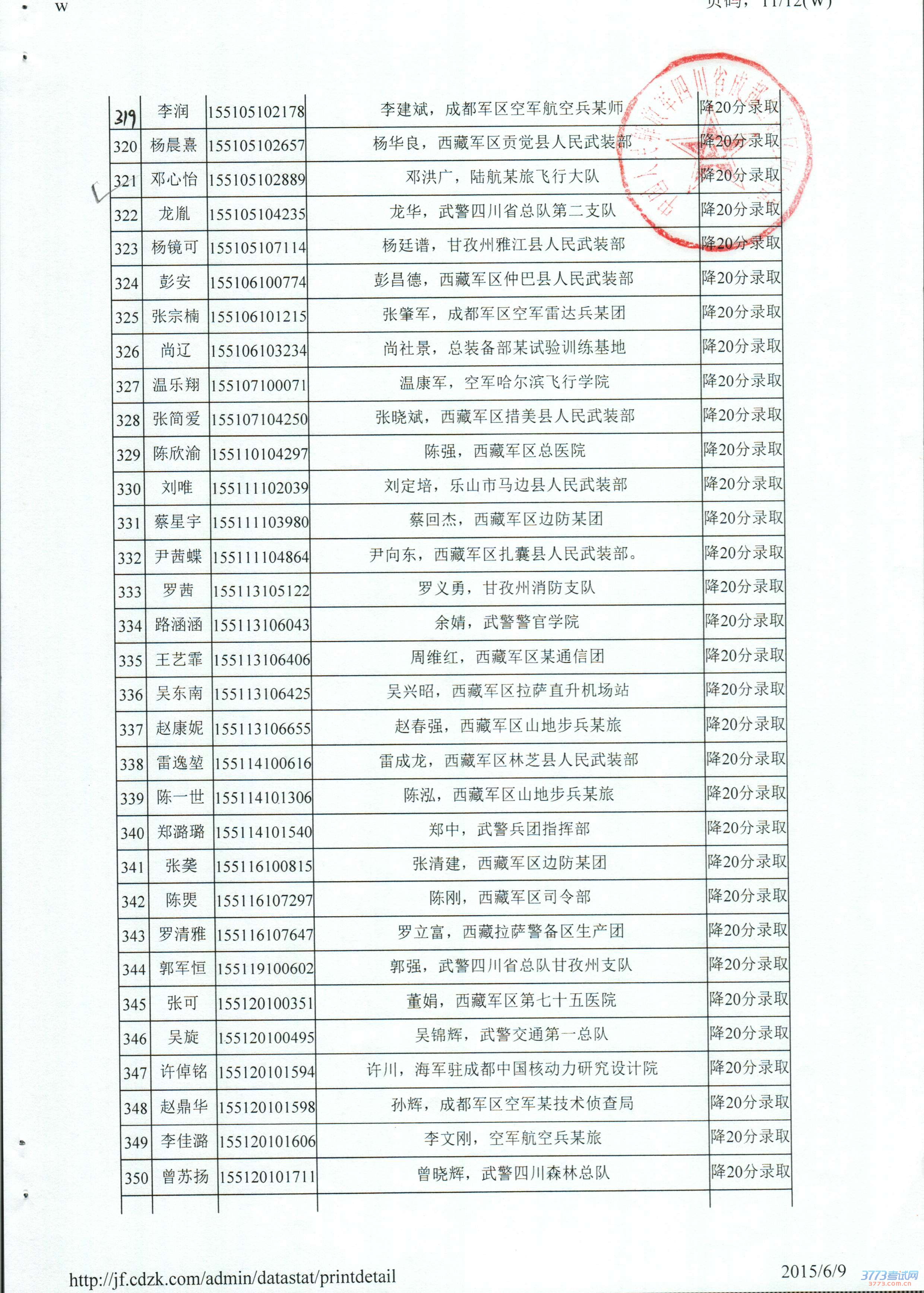 [组图]2015成都中考军人子女加分优待对象名单公示