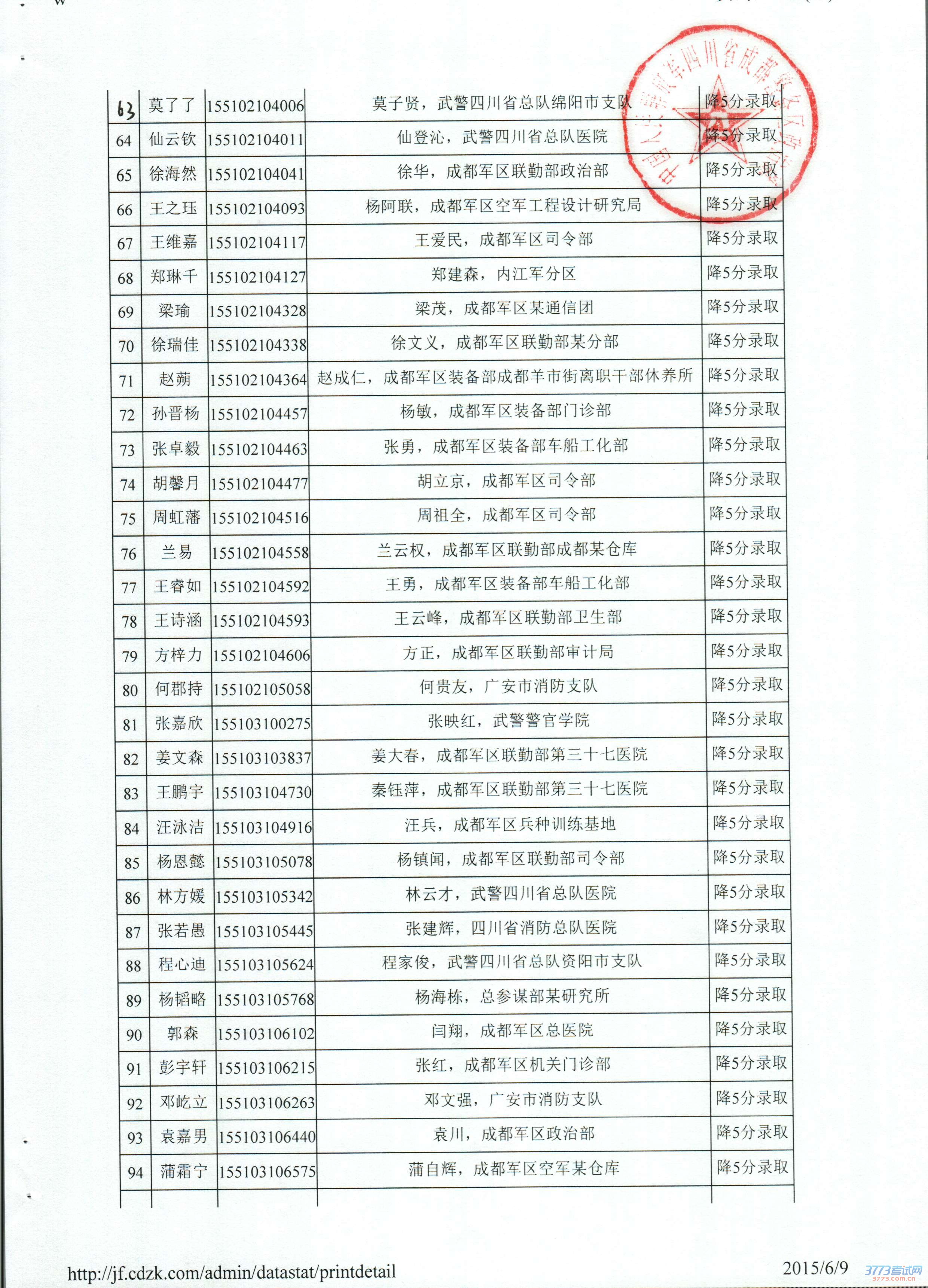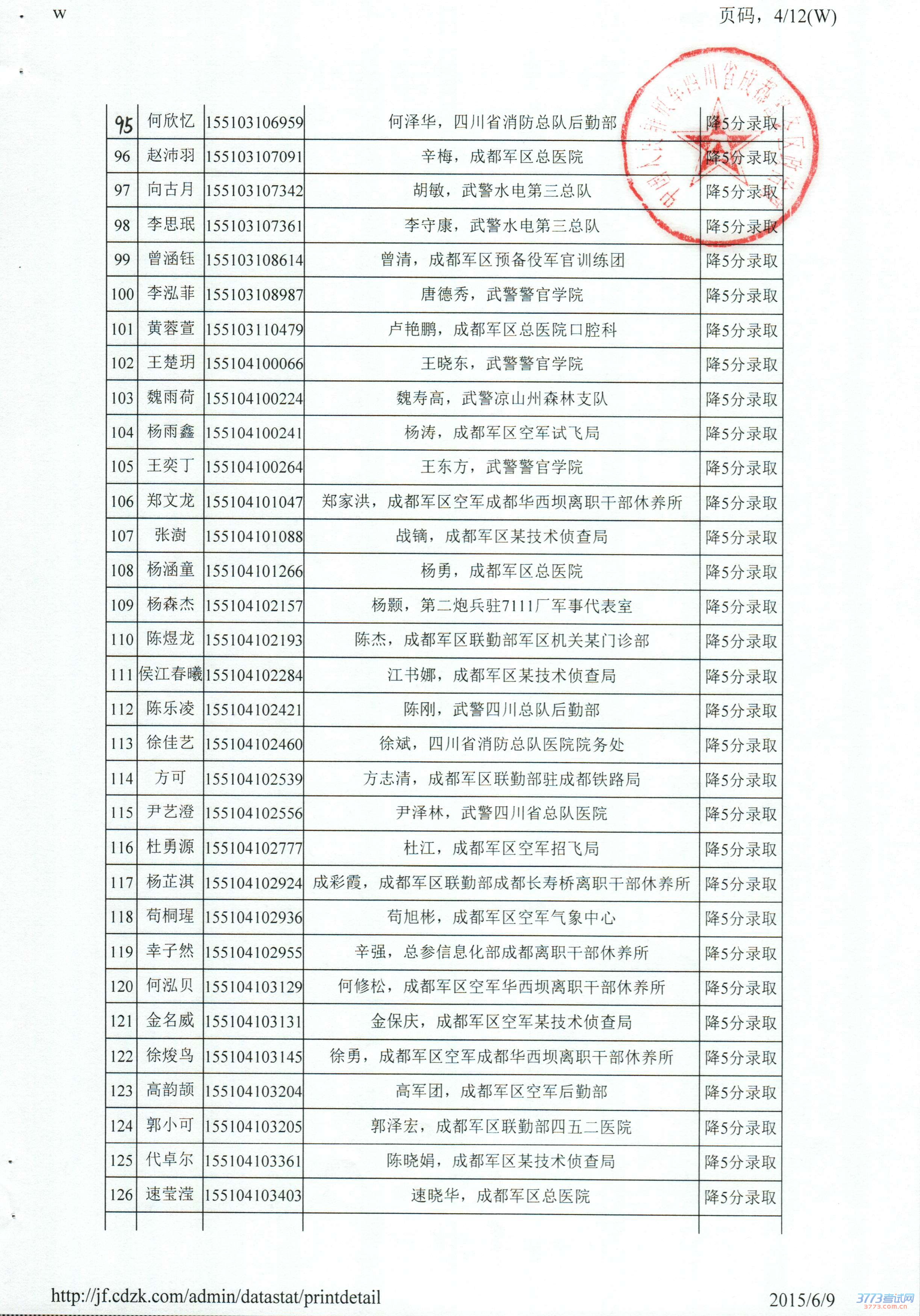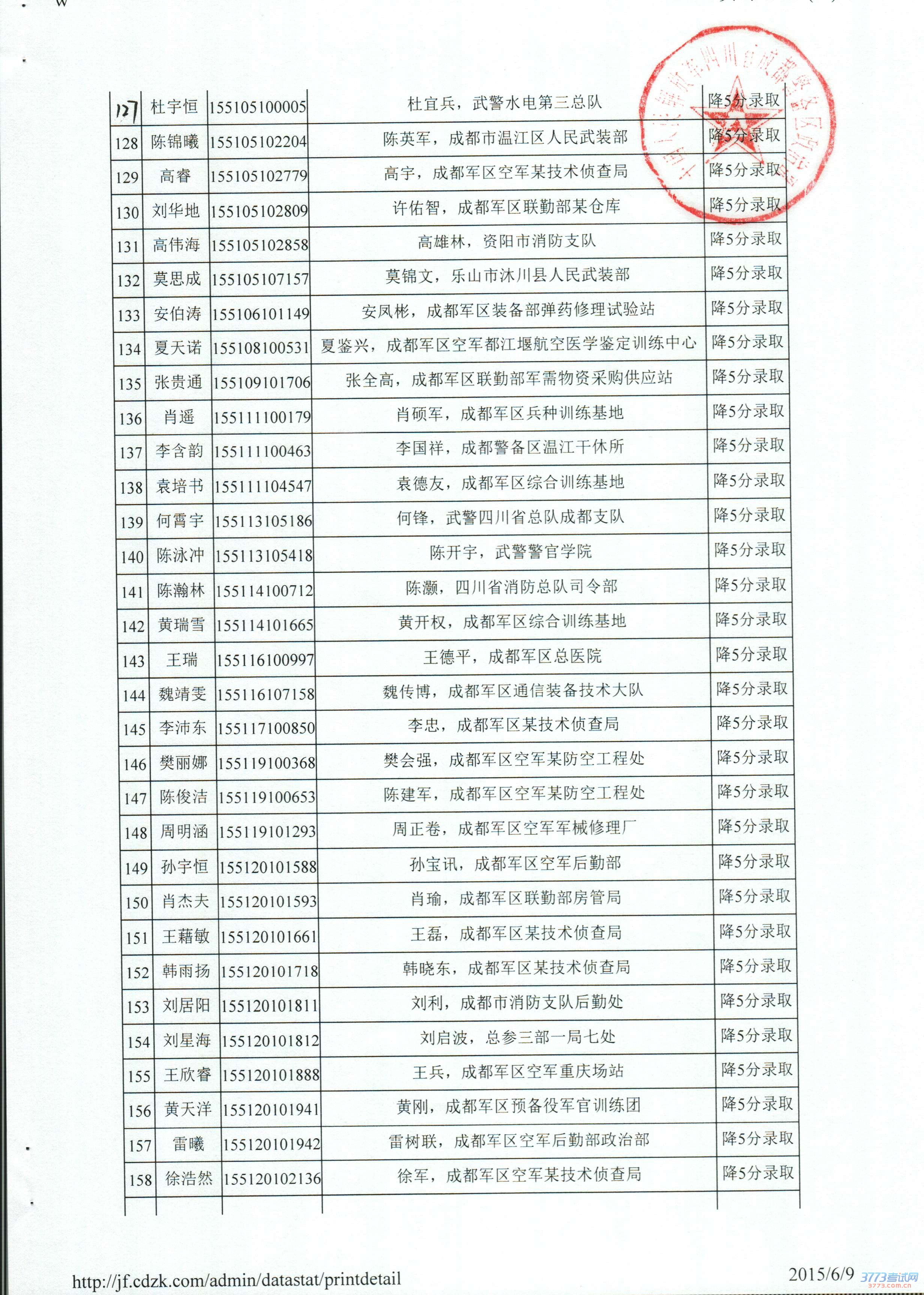 成都市2015年军人子女参加高中阶段学校教育优待对象名册公示