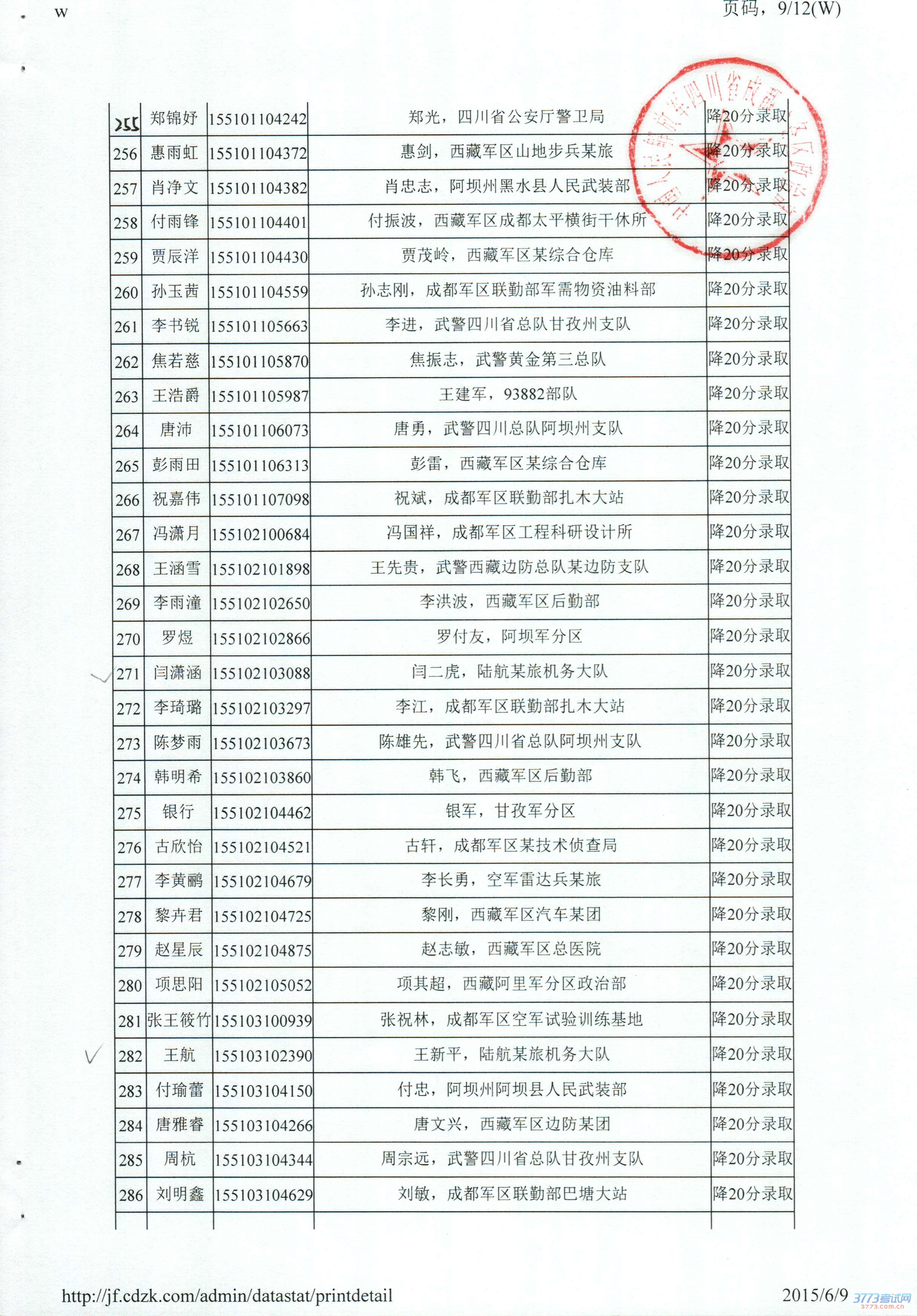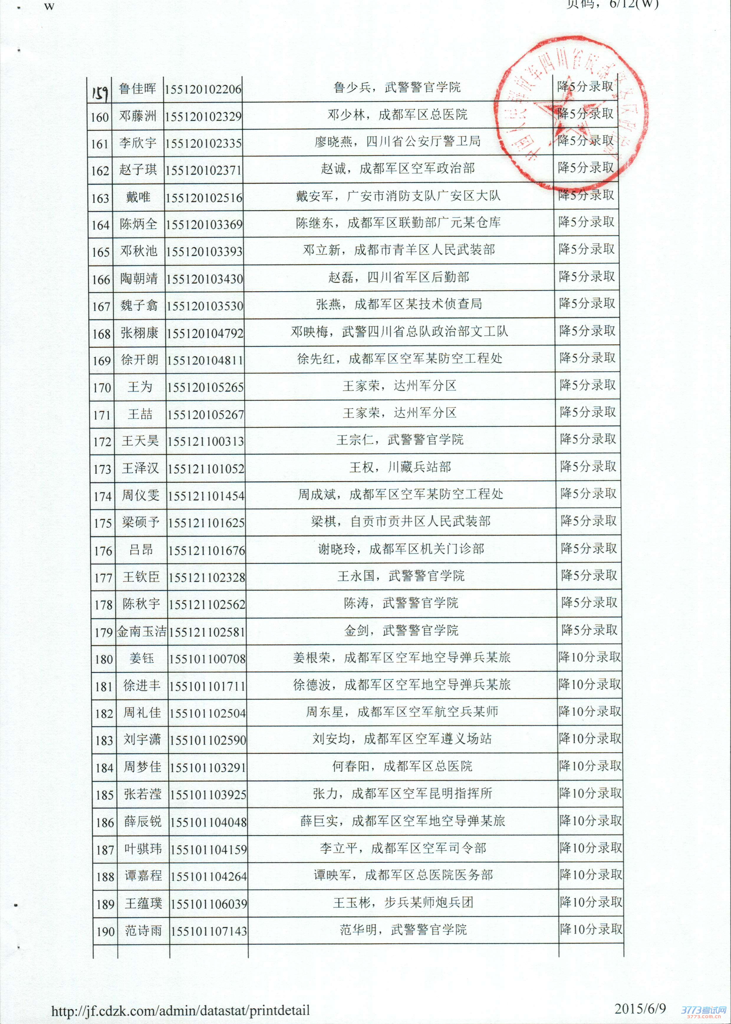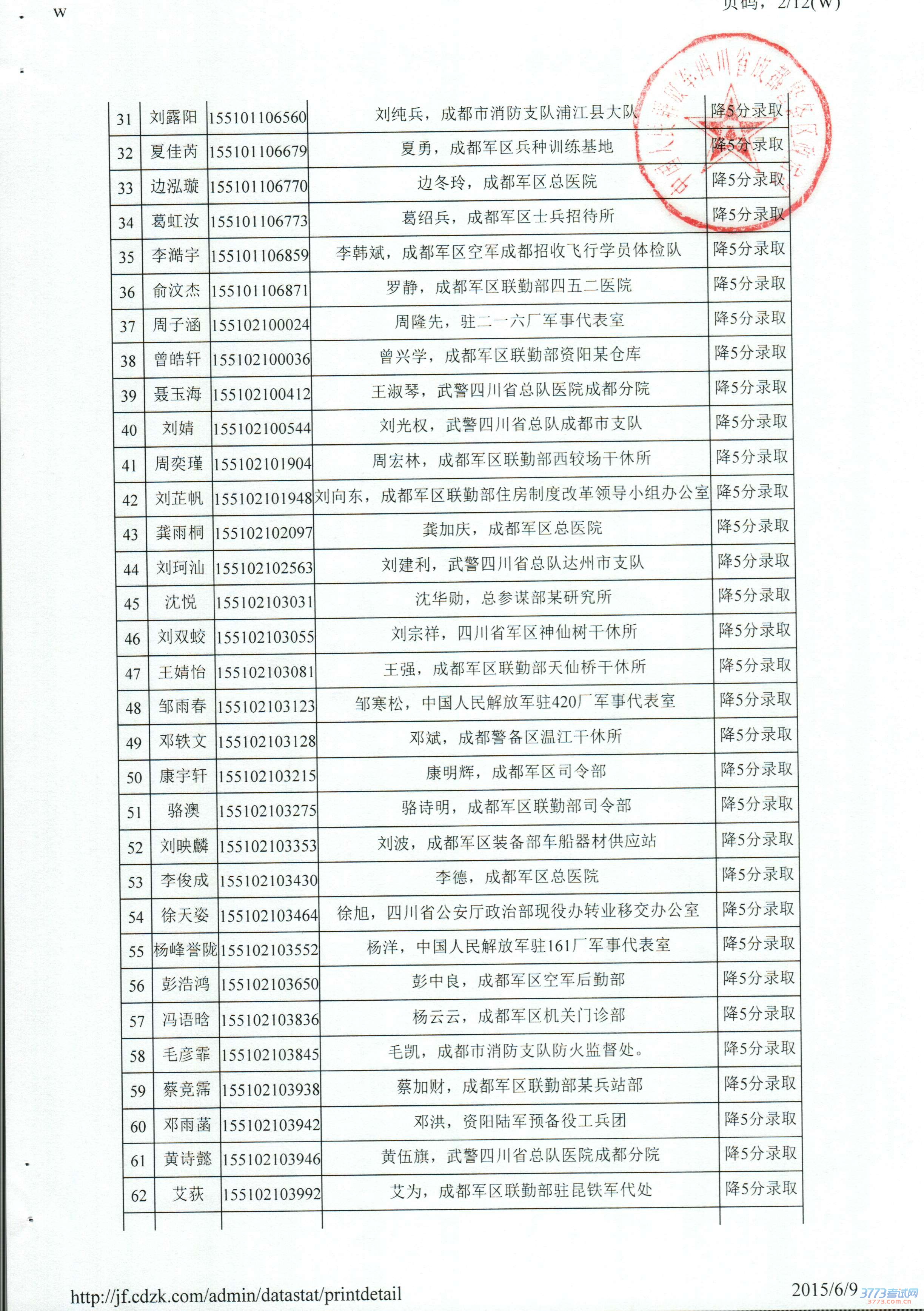 成都市2015年军人子女参加高中阶段学校教育优待对象名册公示