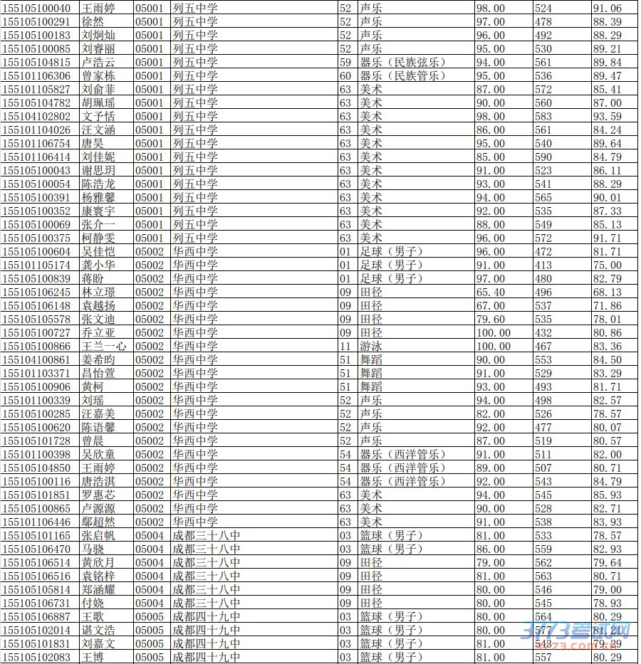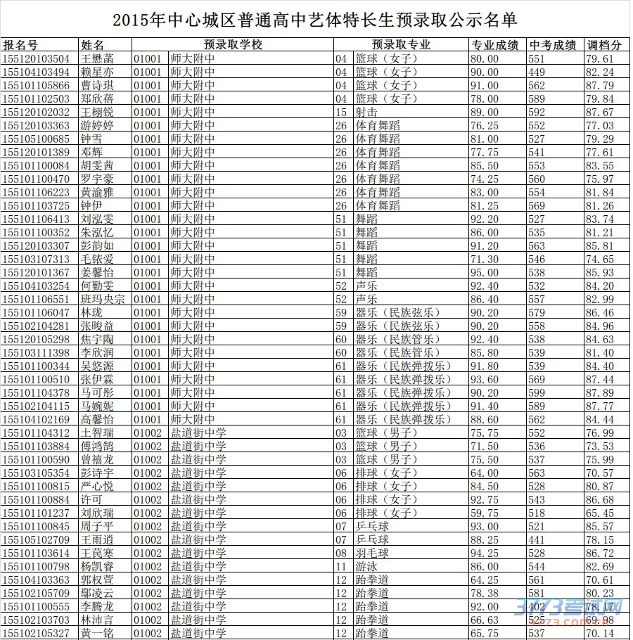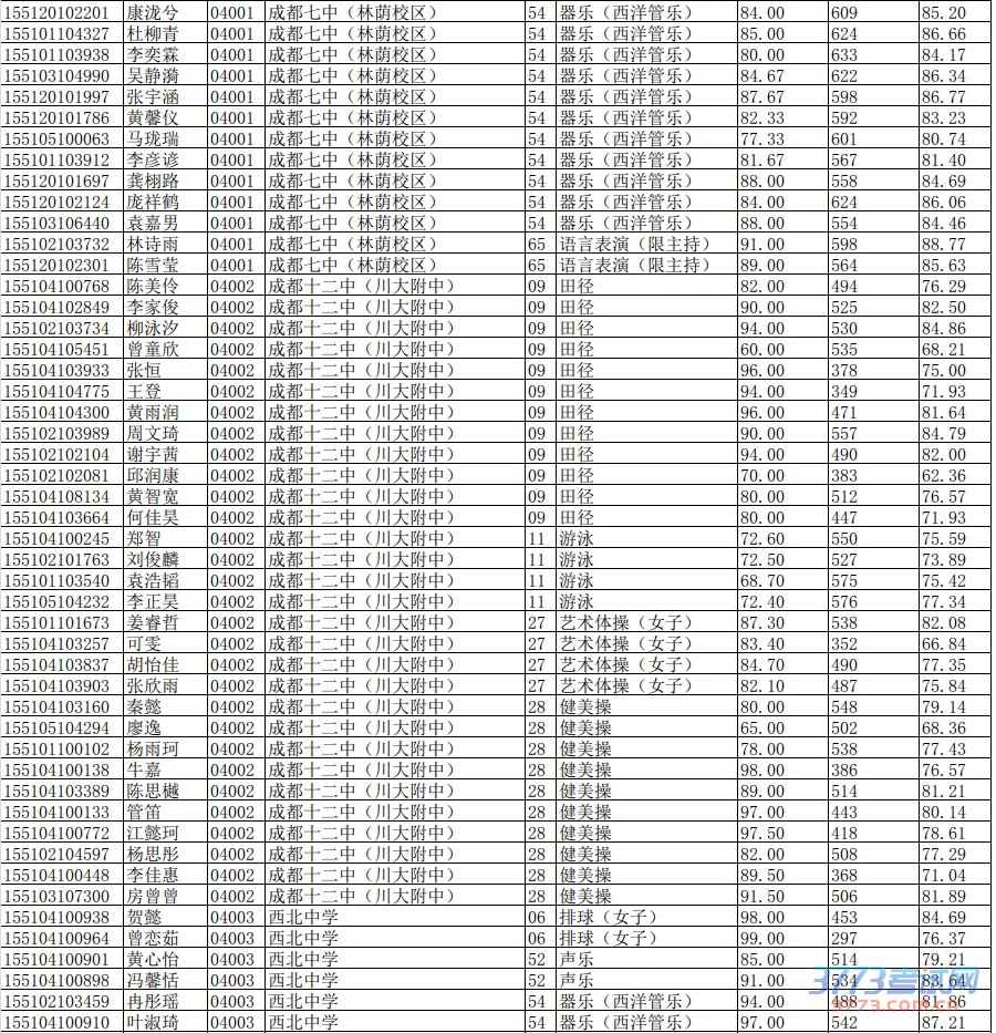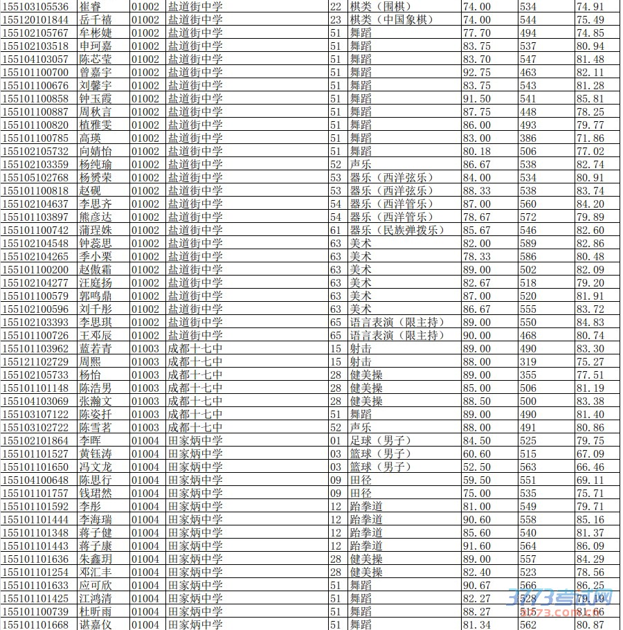 根据《成都市招生考试委员会 成都市教育局关于做好2015年成都市初、高中艺体特长生招生工作有关事宜的通知》(成招考委〔2015〕29号)的规定,现将各高中学校艺体特长生预录名单公示如下,公示期从7月3日起至7月7日。
