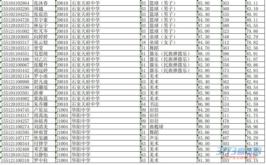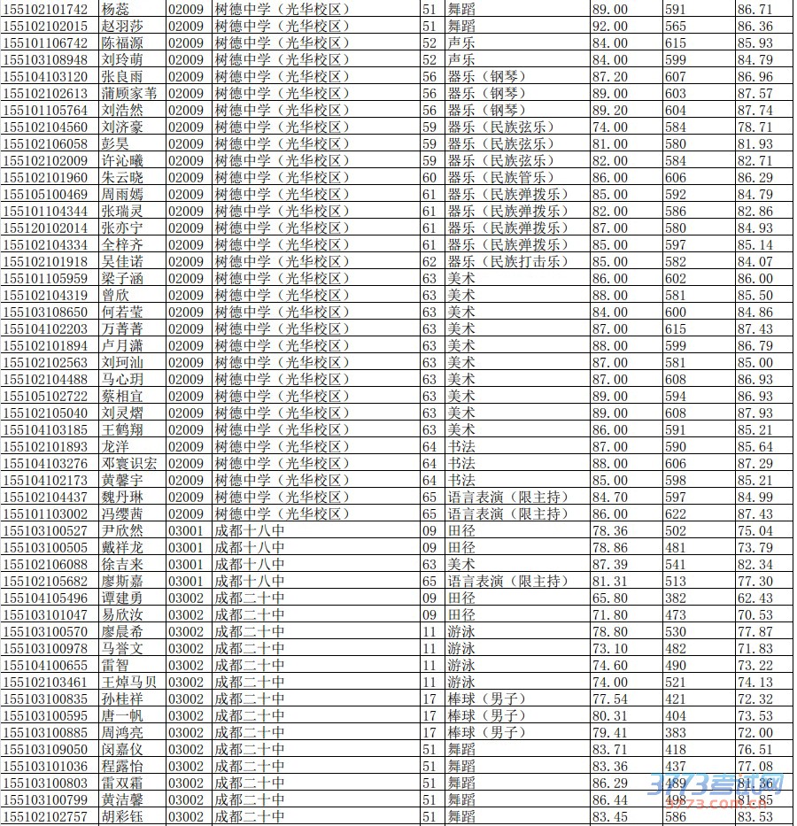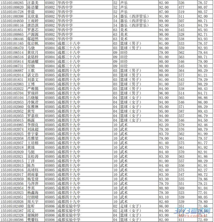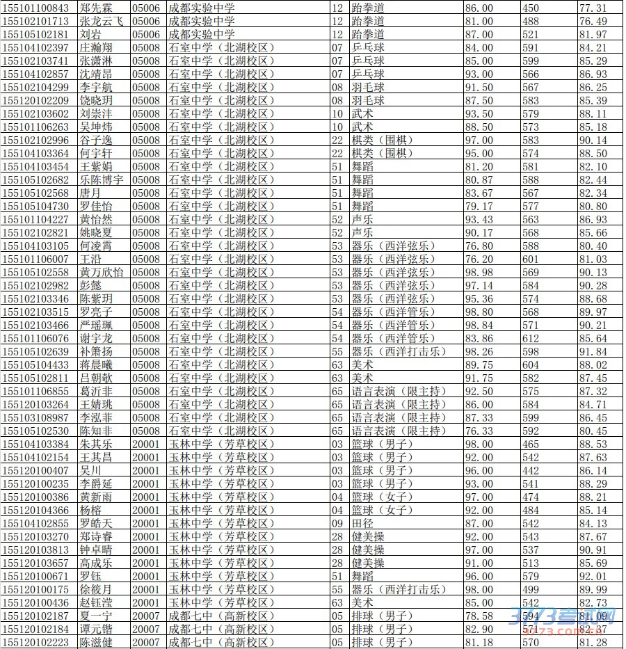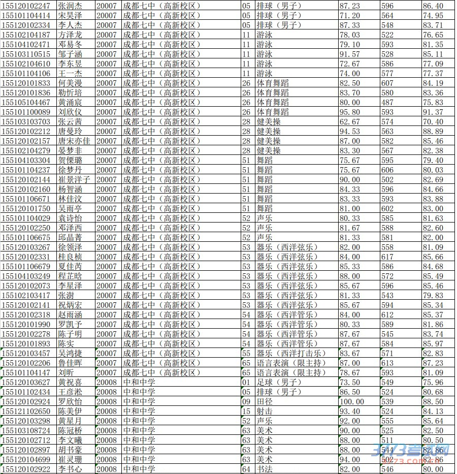 根据《成都市招生考试委员会 成都市教育局关于做好2015年成都市初、高中艺体特长生招生工作有关事宜的通知》(成招考委〔2015〕29号)的规定,现将各高中学校艺体特长生预录名单公示如下,公示期从7月3日起至7月7日。
