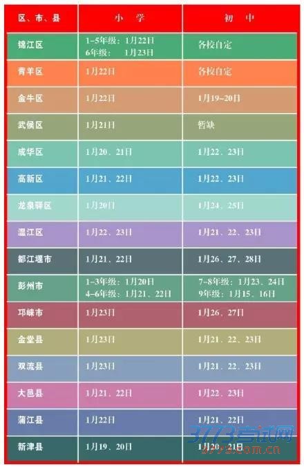 成都各区期末考试马上就要开始了,考试之后就是寒假,成都小升初也整理了成都市各区期末考试时间和寒假的放假安排。 期末考试时间