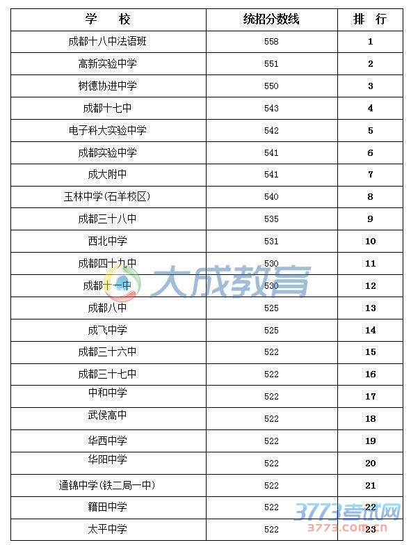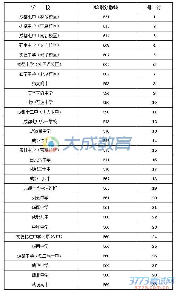 成都中心城区省二级以上示范性普通高中录取 省重线:560分