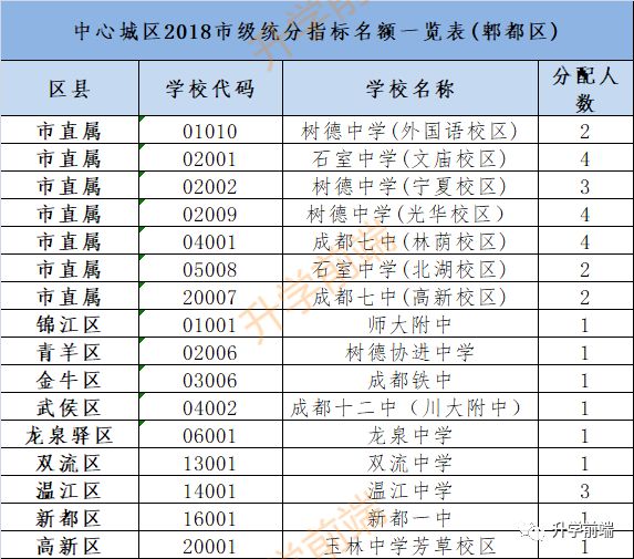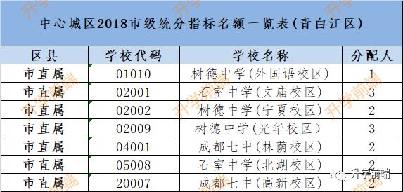 中考:2018年成都中考中心城区指标到校生市级统分指标分配细节