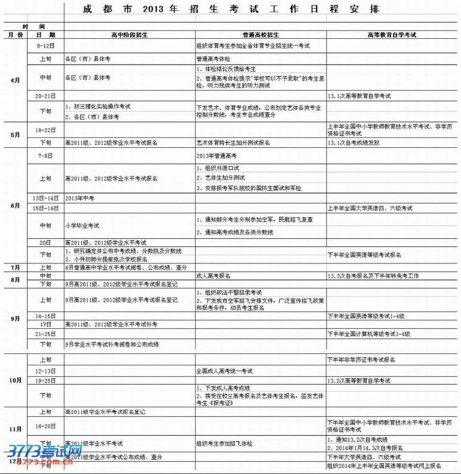 [组图]2013年成都幼儿园小学初中高中入学时间安排
