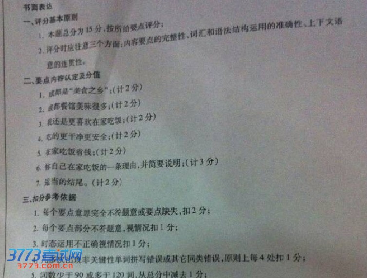 [组图]2013成都中考英语答案及评分标准