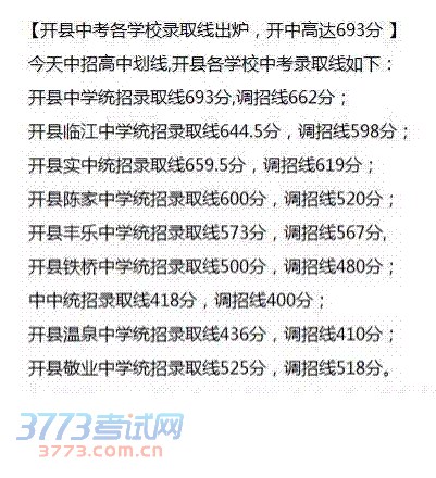 [图文]2014开县中考分数线 各高中录取分数线