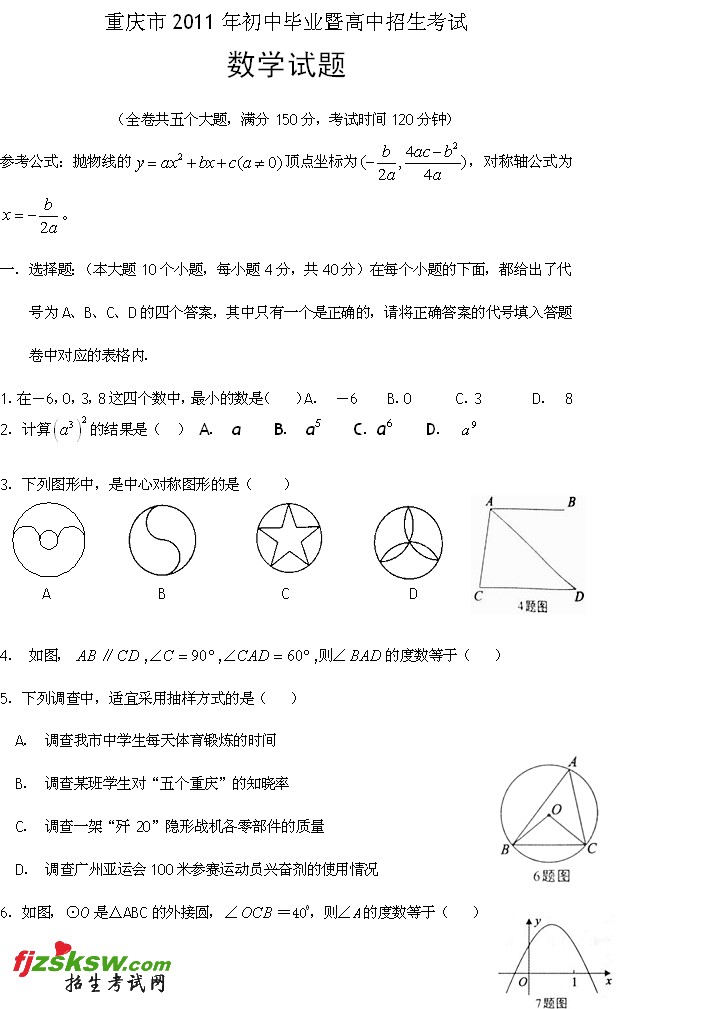 [组图]重庆2011年数学中考试题