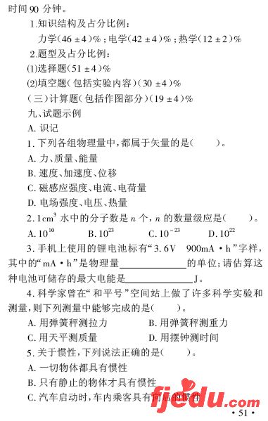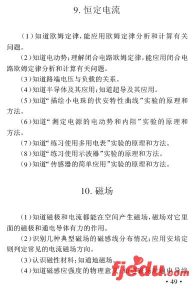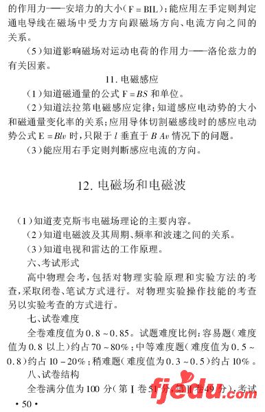 2007年福建省高中会考考试大纲物理学科