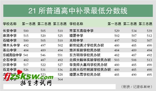 本报讯 (记者张颖妍)普通高中补录工作昨日开始,今年共有21所普通高中安排补录。按照规定,学业考试成绩在480分或以上、会考科目合格的中考考生已于7月25日补填志愿。