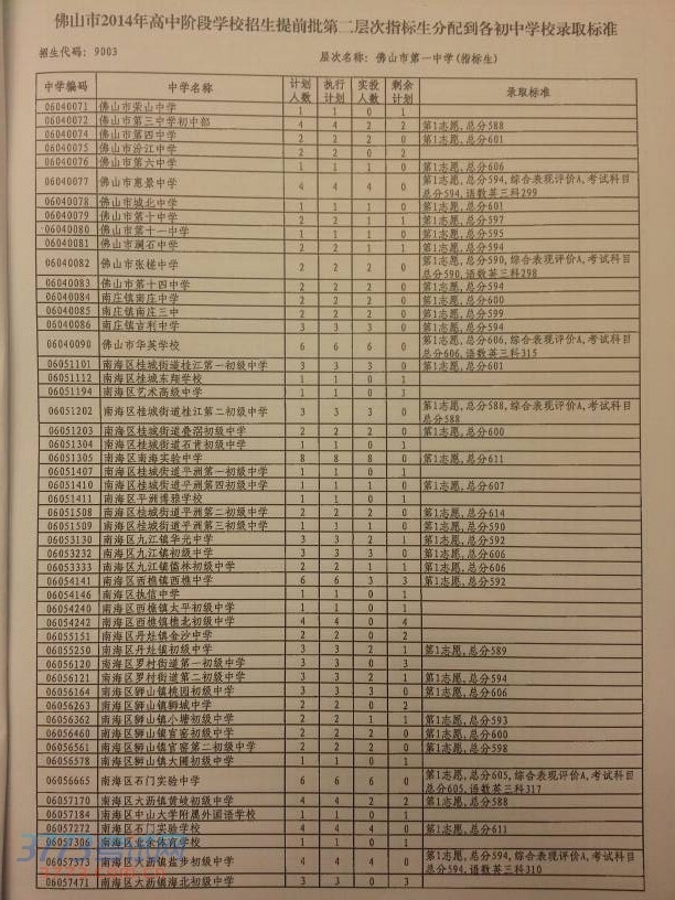 佛山一中等8所提前批学校指标生计划未完成转为普通生(面向全市招生)最低录取控制分数线592分。在此控制分数线以上未完成招生计划的学校,按考生志愿先后顺序从高分到低分录取的原则,以5分为一个分数段依次降分投档录取,直到该学校招生计划完成为止。