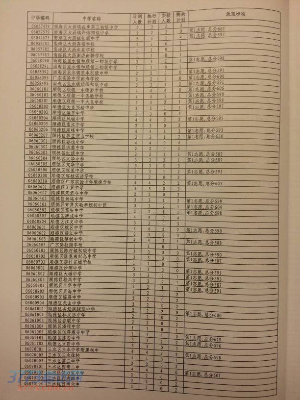 佛山一中等8所学校普通生、广东实验中学面向全市招生,面向全市招生4894个,其最低录取控制分数线581分。在此分数线之上,部分学校的招生计划未完成,市招生办根据考生志愿的先后顺序从高分到低分录取的原则,以5分为一个分数段依次降分投档,直到该学校招生计划完成为止。