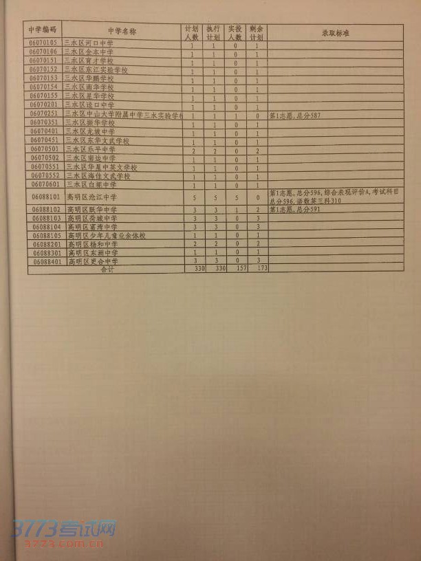 今年我市提前批8所学校,每所学校均安排了30%的普通生名额招收指标生,其中佛山一中指标生面向全市招生,其他7所学校面向区内招生。佛山一中等8所学校指标生计划共2185人,实际完成1642人,剩有543个指标转普通生招收,标准生转普通生最低录取控制线592分。未完成录取计划的,根据考生志愿的先后顺序从高分到低分录取的原则,以5分为一个分数段依次降分投档,直到该学校招生计划完成为止。