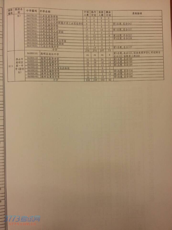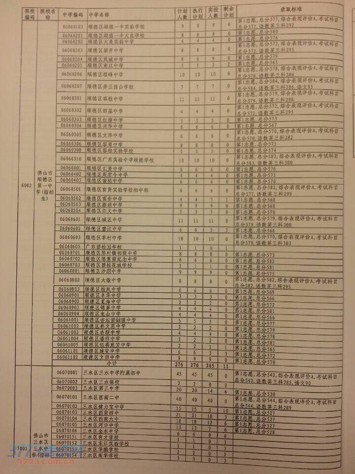 2、佛山一中(普通生)招生计划750名。