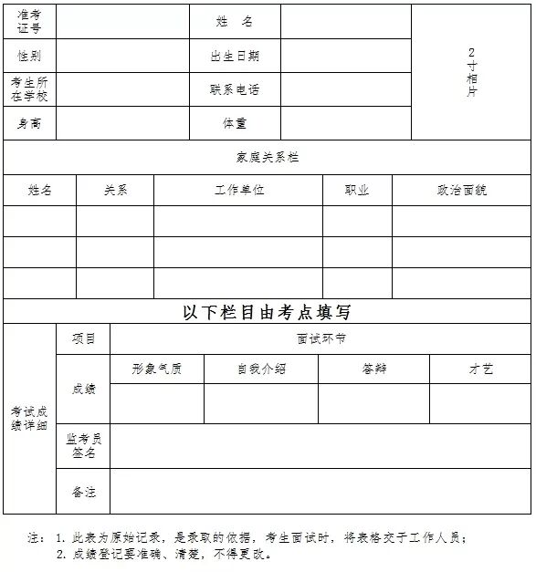 考试面试成绩登记表