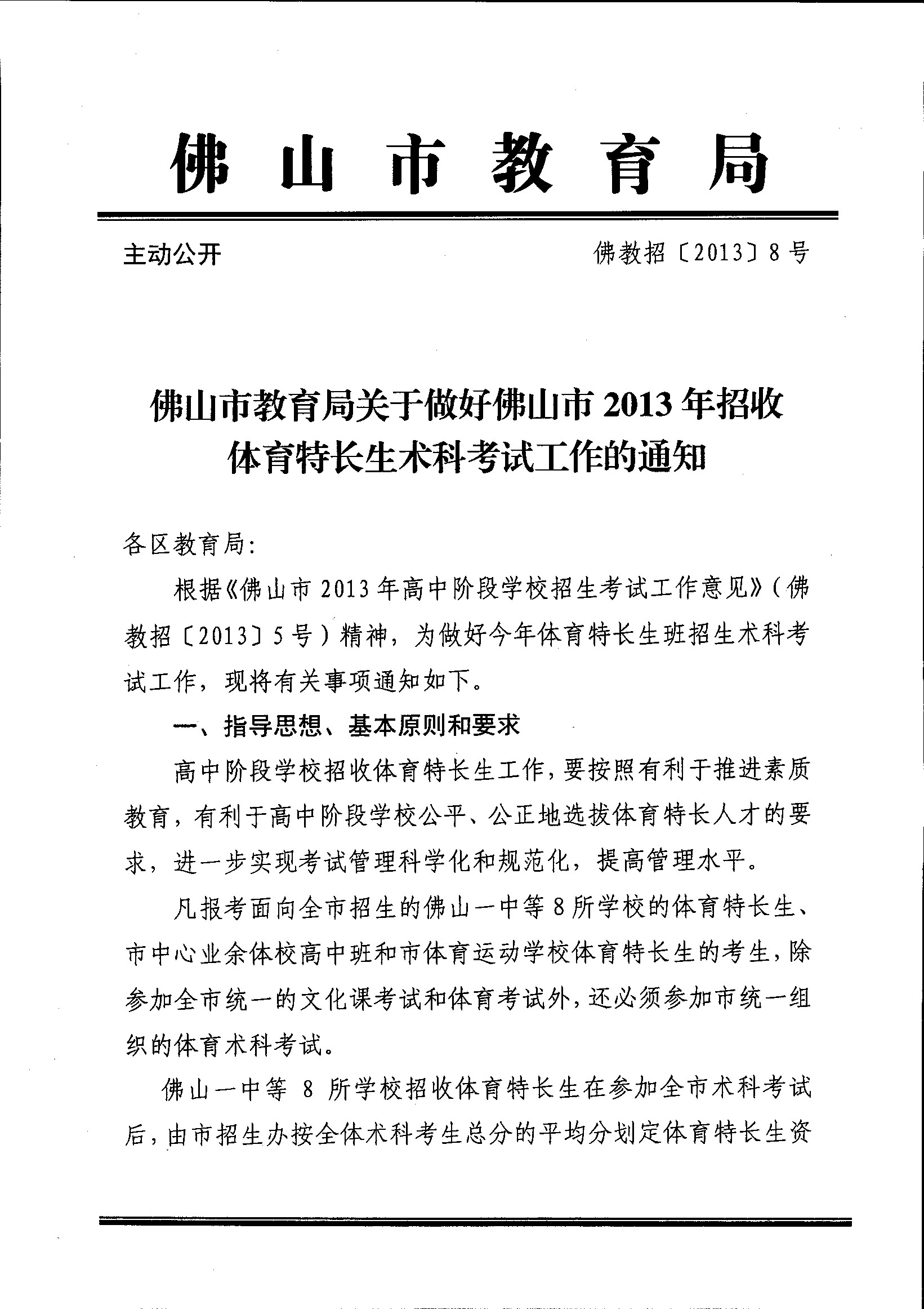 [图文]佛山市2013年体育特长生术科考试工作的通知