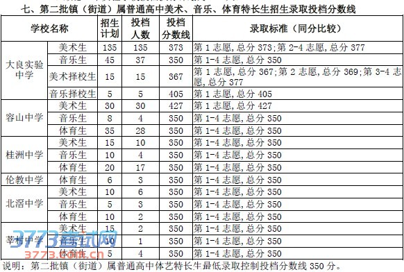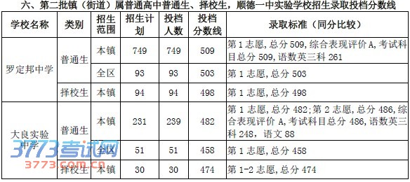 伦教中学普通生本镇463、全区460、择校482;勒流中学普通生本镇459、全区453,择校490;北窖中学普通生本镇451、全区442;莘村中学普通生本校414、全区452;青云中学普通生本镇457、全区444、择校494;乐从中学普通生本镇423、全区453,择校生本镇494、全区469。