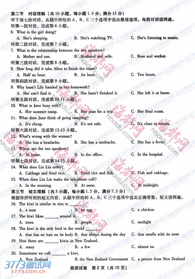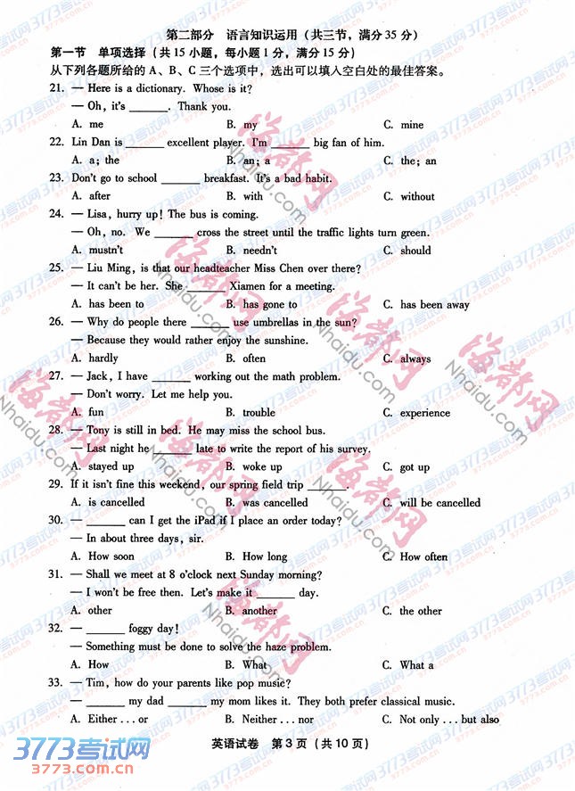 2014福州中考英语试卷及答案发布2014福州中考英语试卷及答案发布