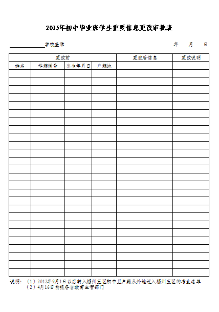 [图文]2015年福州初中毕业班学生重要信息更改审批表