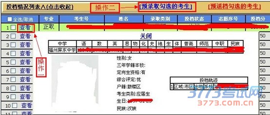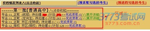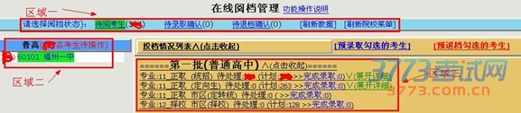 区域三:所选院校下需要阅档的专业,(点击需要的专业进行阅档)