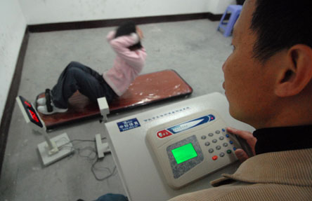 “姿势一定要标准、规范,肘部要碰到关节,腰部也要到位……”在仰卧起坐现场,由于采用电子仪器测试,对考生动作规范的要求也特别高。记者了解到,在这次考试中,为了保证公平公正,凡是能用电子仪器的都用电子仪器了,尽量避免人为因素。
