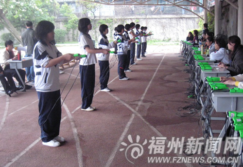 今年体育考试除必考类的50米跑外,其他9个项目被分成2类。外国语学校考点主考郭春光老师介绍,立定跳远、实心球、篮球运球、排球垫球等第1类项目侧重运动技能,1分钟跳绳、800米(女)、1000米(男)、1分钟仰卧起坐(女)、引体向上(男)等第2类项目则侧重运动能力。据了解,各考点选择跳绳和立定跳远的学生都超过半数。