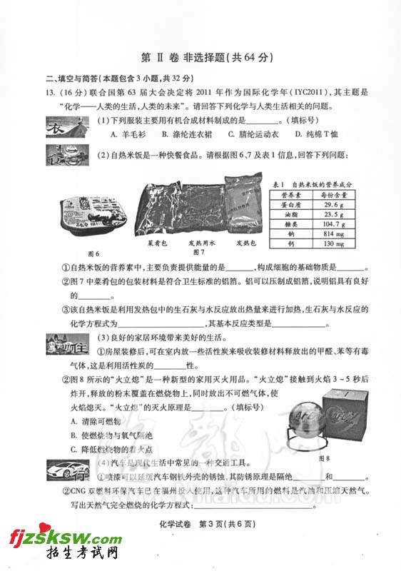 [组图]福州2011年中考化学试题及答案