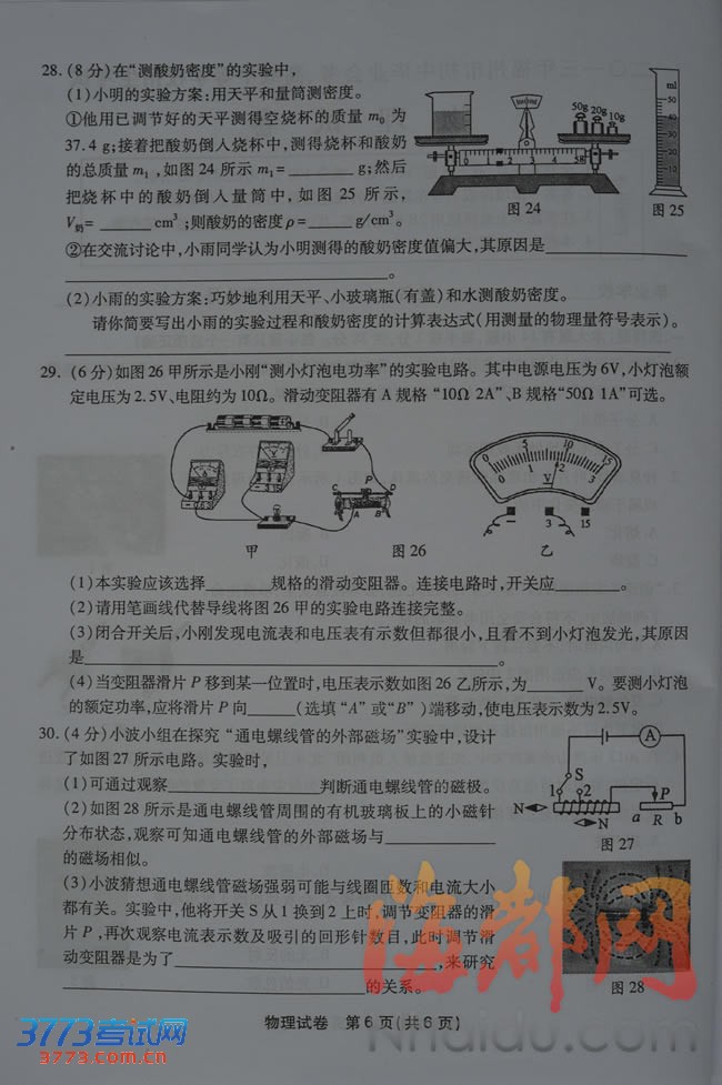 [组图]2013年福州中考物理试题试卷及答案