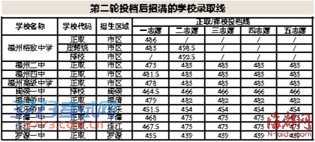 核心提示:继前日福州普高进行首轮录取后,昨天进行了第二轮录取,在普高第一条线上进行二至五志愿的录取后,并开始在普高第一条线上降10分进行一志愿的录取。经过这一轮投档,格致中学切出了定转统和择校的录取线,而福州二中、四中、福州高级中学也切出了正取录取线,并在各初中校切出了定向生线(详见表格)。