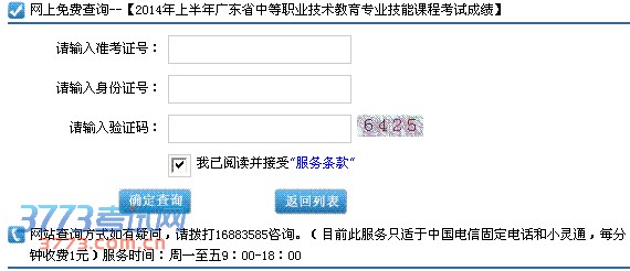 网站查询如有疑问,请拨打考生服务热线:16883585咨询。(目前此服务只适于中国电信固定电话和小灵通,每分钟收费1元)或拨打网站客服热线:020-38032604,服务时间:周一至五9:00-18:00。