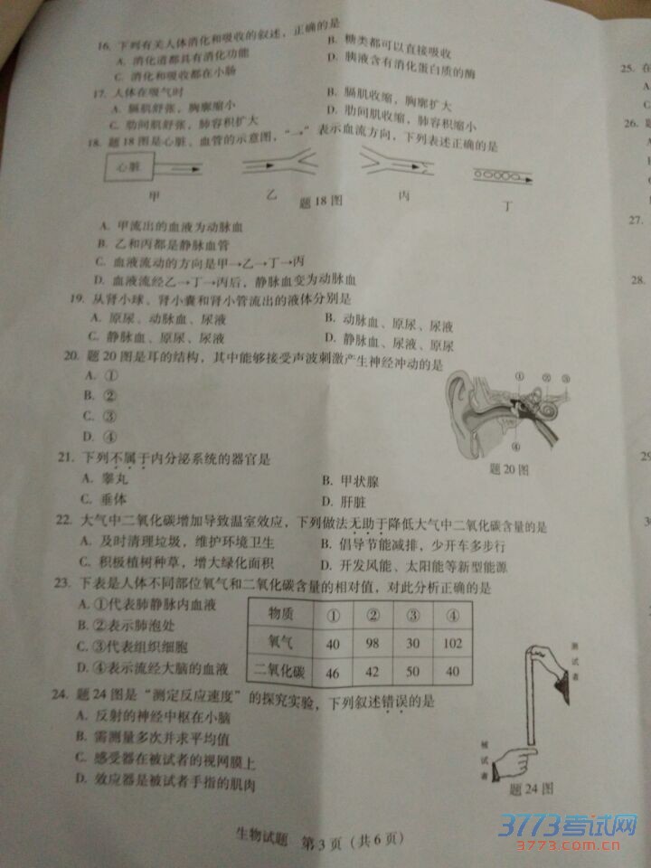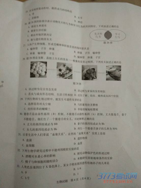 [组图]2015广东中考初中会考生物试题及答案