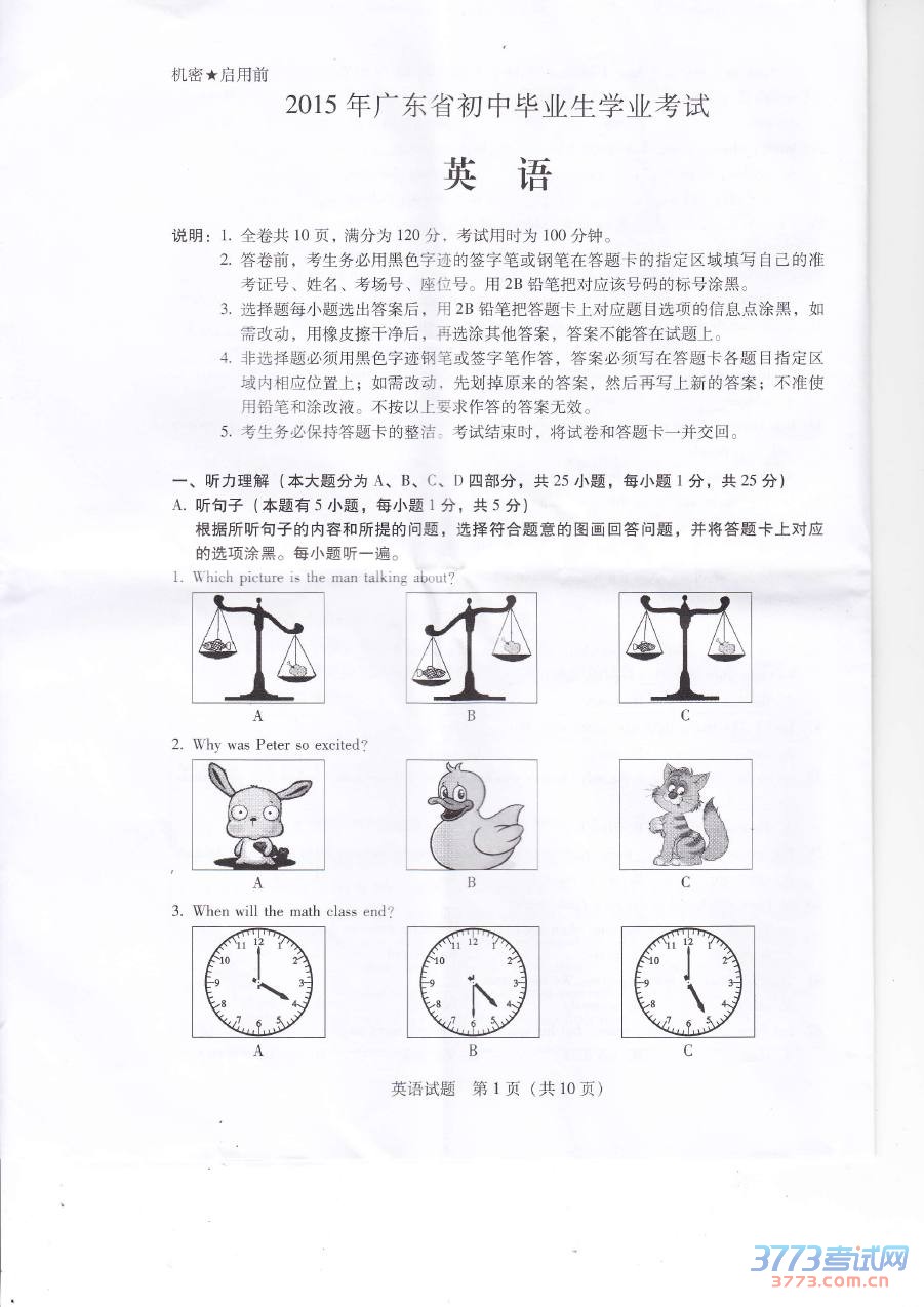 公布广东中考试题、答案和中考作文。祝各位考生都能取得好的成绩。2015年广东中考英语试题及答案: