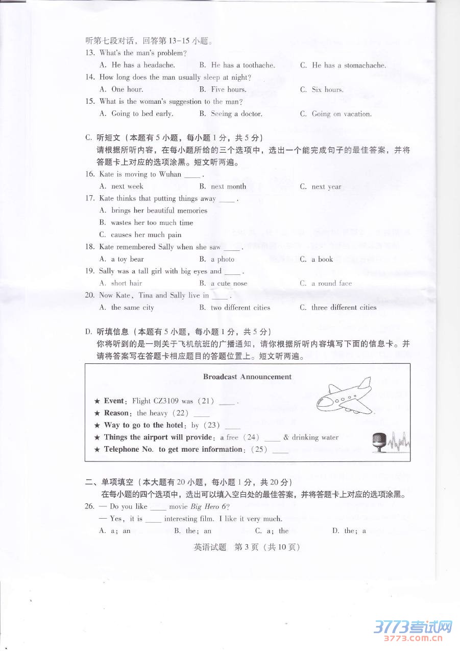 [组图]2015广东中考英语试题及答案