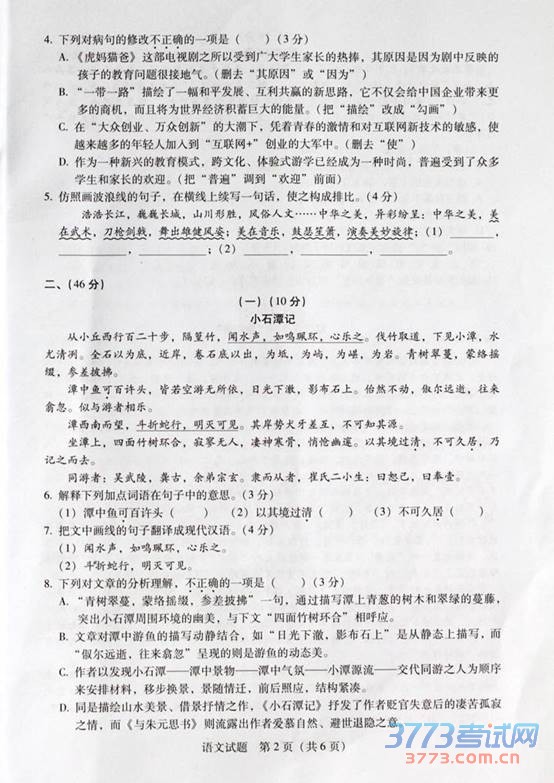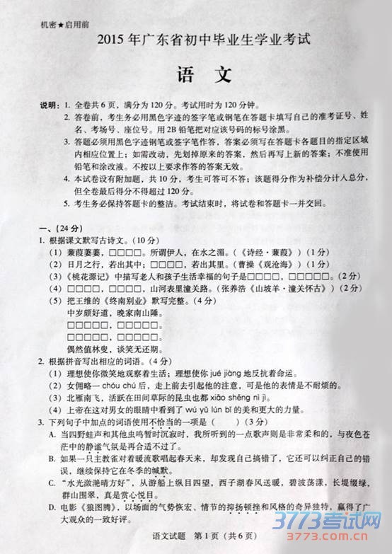 广东中考试题、答案和中考作文。祝各位考生都能取得好的成绩。2015年广东中考语文试题及答案: